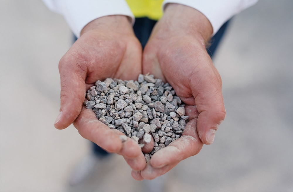Aufbereiteter Abbruchbeton wird zu hochwertiger RC-Gesteinskörnung Typ 1 verarbeitet. - Beschleunigte Karbonatisierung