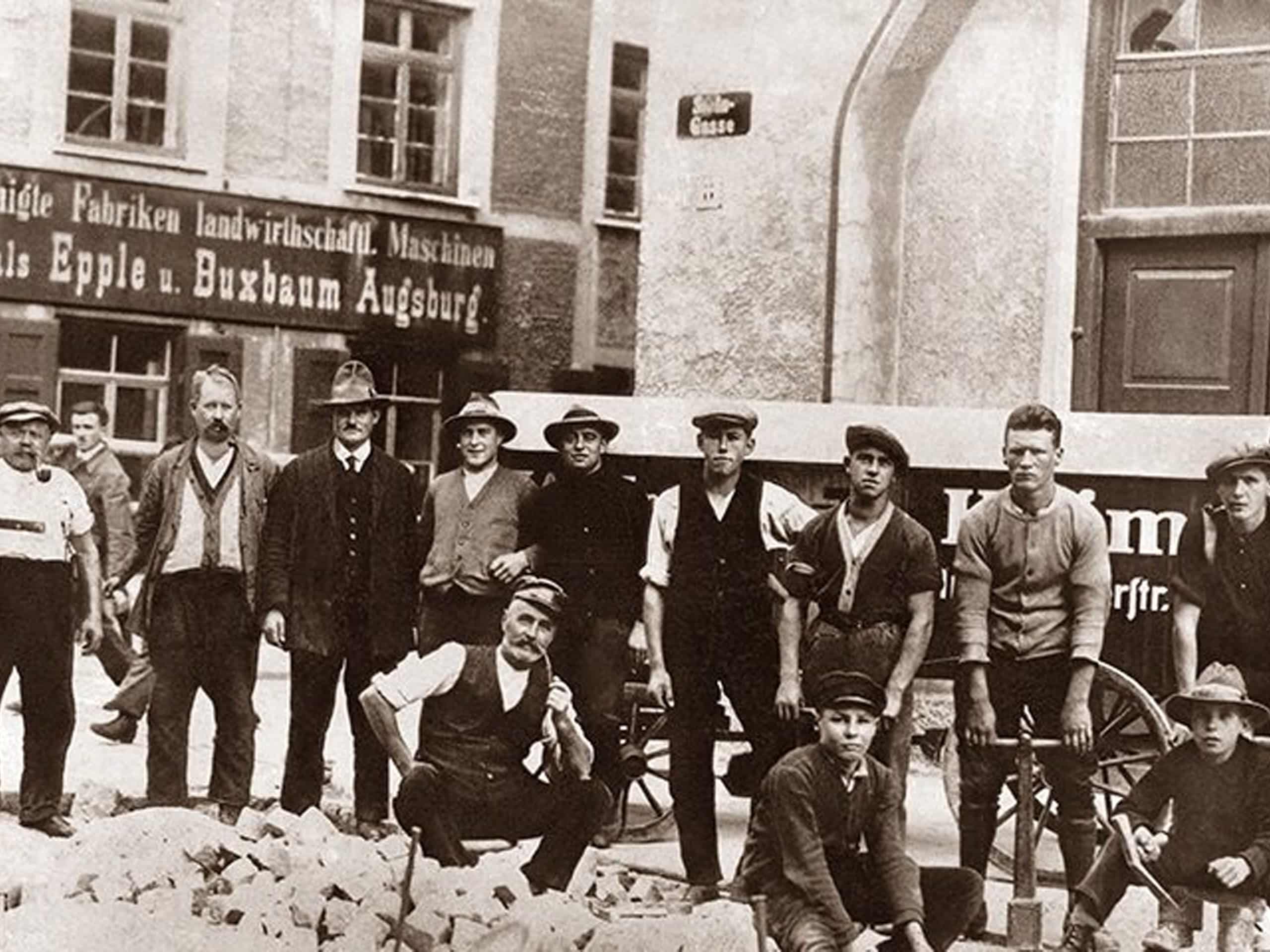 1919 gründet Wilhelm Imanuel Heim am Ulmer Lederhof ein kleines Bauunternehmen, welches sich auf Pflasterarbeiten spezialisiert.