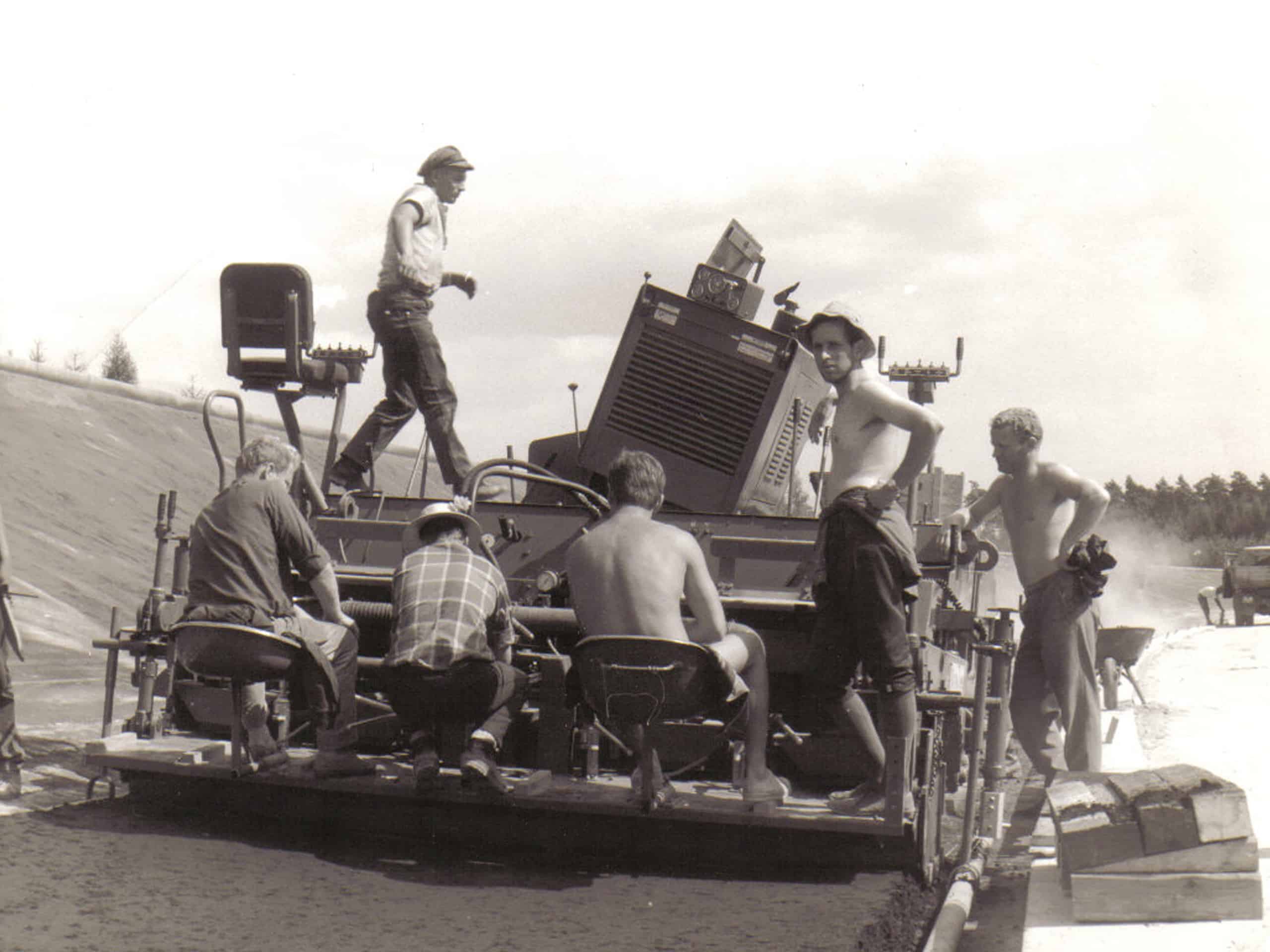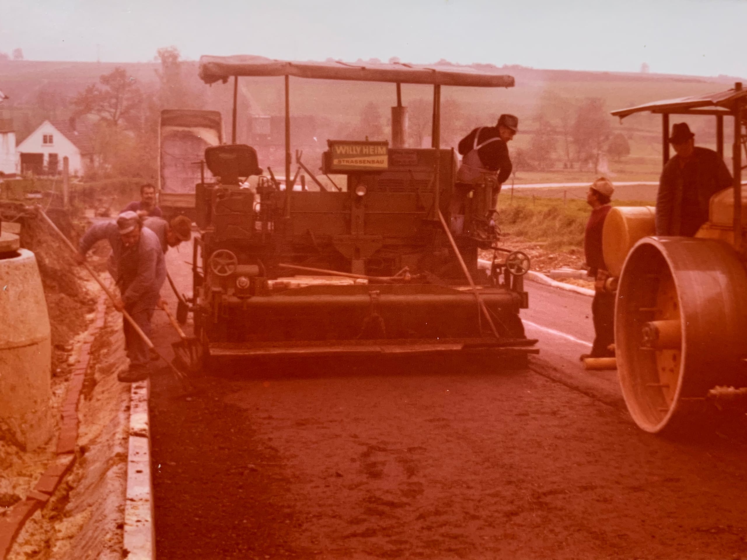 Inmitten der Industrialisierung, setzt auch die Firma HEIM auf Technik: Der erste Asphaltfertiger wird angeschafft. Mit der neuen Technik können Straßen und Wege mit einer Breite von 2,5 bis 12,5 m maschinell eingebaut werden.