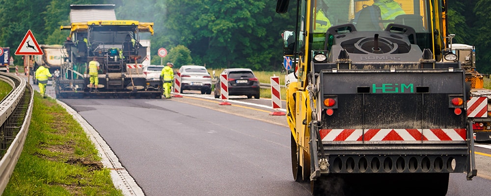 Die HEIM-Gruppe realisiert Verkehrswegebau-Projekte aller Größenordnungen: Neubau und Erneuerung von Kreis-, Gemeindestraßen, Erschließungsstraßen, Parkflächen und Zufahrten. Wir bieten die komplette Wertschöpfung – Planung, Erd- und Oberbau, Asphaltdecken (inkl. Gussasphalt), Qualitätssicherung und Dokumentation.