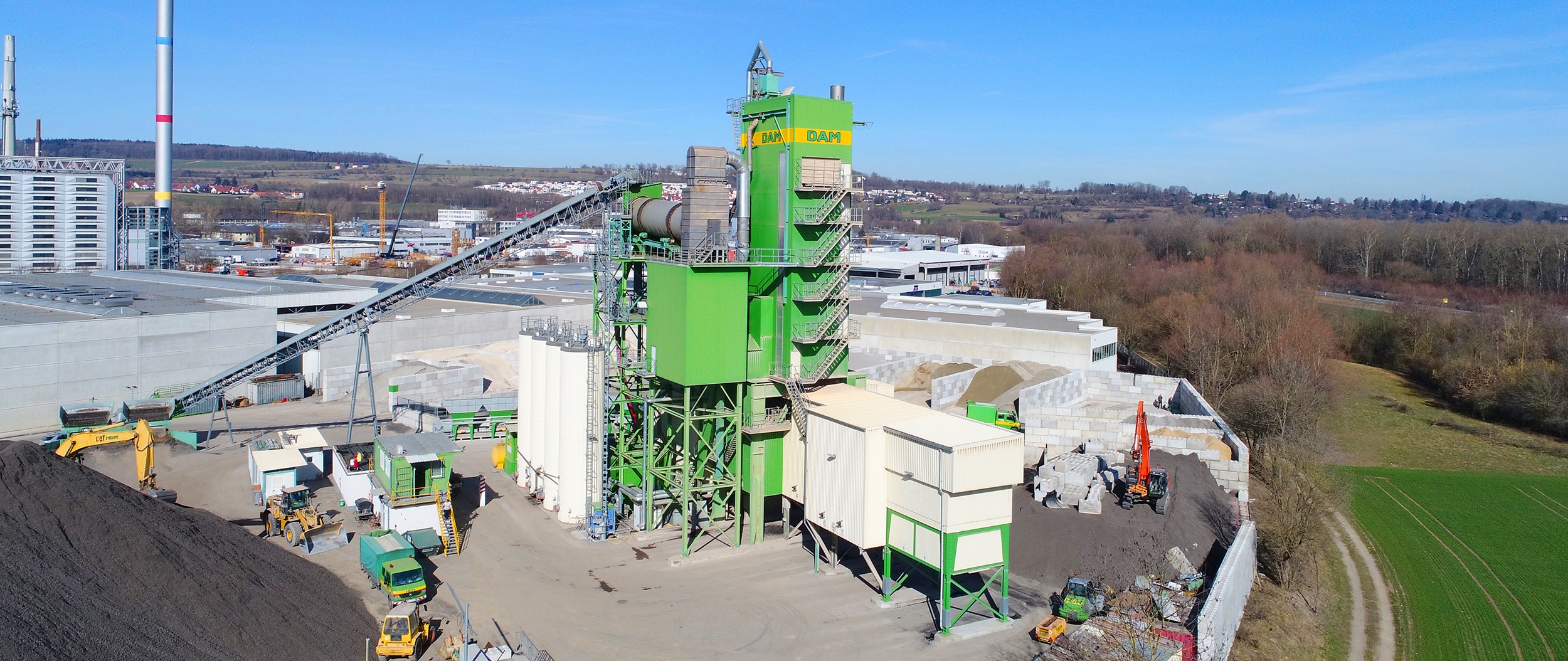 Die Donau-Asphalt-Mischwerke (DAM) sind in der Region Ulm und Umgebung ein leistungsstarker Partner für Walzasphalt, Gussasphalt und Porenasphalt. Das Mischwerk wurde umfassend modernisiert und erweitert. Eine leistungsstarke Paralleltrommel und präzise Steuerungstechnik sorgen für die Herstellung hochwertiger Asphaltprodukte. Die Anlagentechnik ermöglicht einen Recyclinganteil von bis zu 60 Prozent, bezogen von UBR Ulmer Baustoff Recycling.